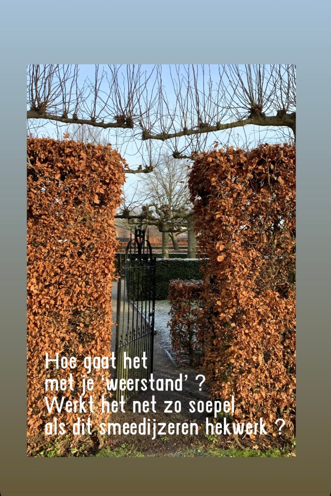 Juist door open te staan , naar jezelf te kijken en bij jezelf over de muren die er zijn ontstaan, heen te leren kijken is het mogelijk om de ‘weerstand’ om te buigen naar weerstand, en een sterker persoon te worden die tegen een stootje kan.