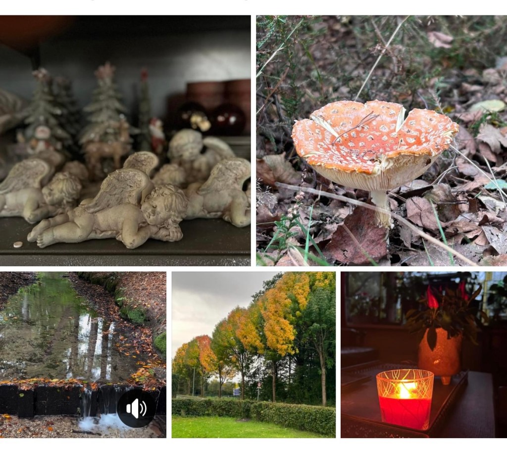 Als ik aan de herfst denk, denk ik aan mijn geboortemaand november, feest , lichtjes ,kaarsen ,appeltaart of flappen , warmte, geuren en kleuren maar ook aan stormen, wind en water, veel water in de vorm van regen en soms al een beetje sneeuw.